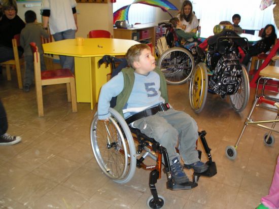 Voici la salle où l'on prend notre goûter; on y écoute de la musique, on y joue des jeux et surtout il y a un énorme tapis (avec des plans inclinés et des poufs)...